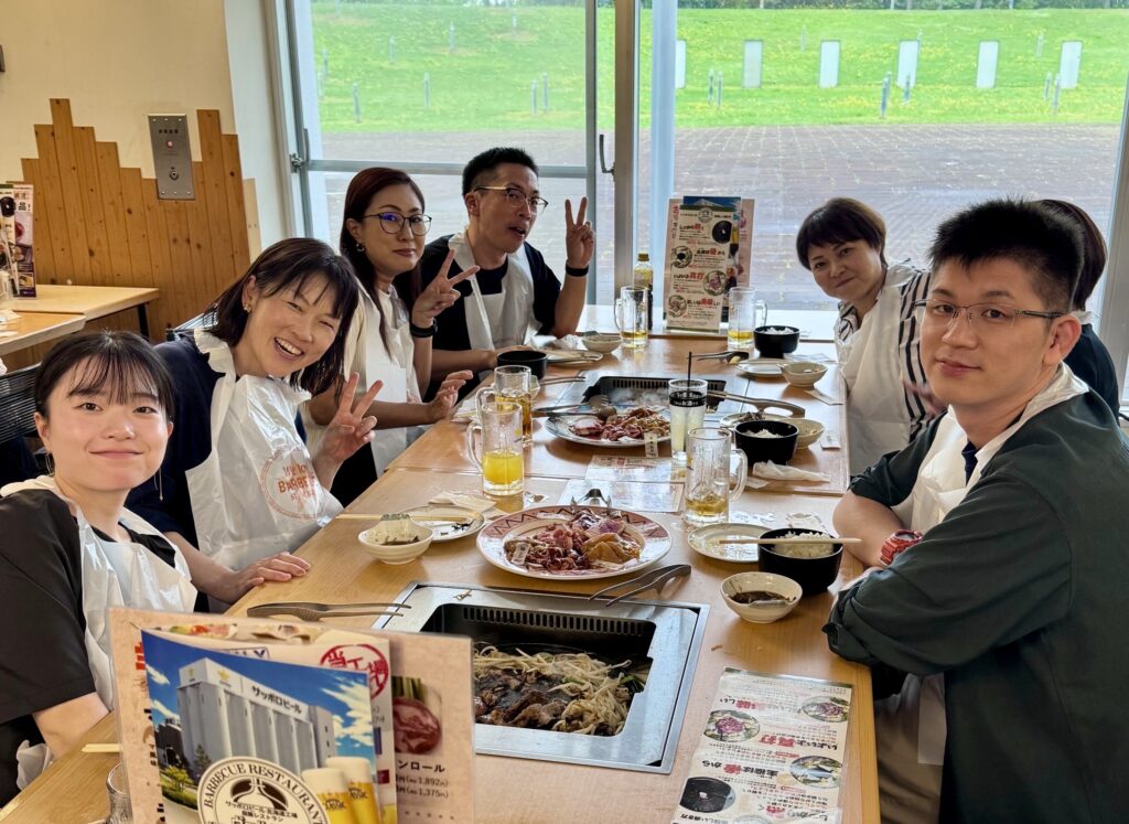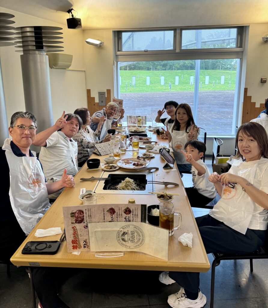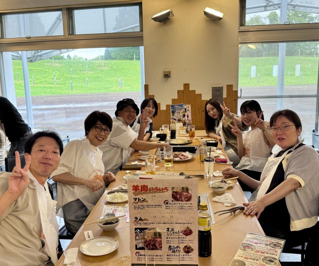 昼食にジンギスカンバーベキューの食べ放題で旅の始まりを乾杯しました。